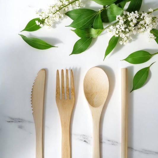 Bamboo Cutlery Set | Reusable & Travel-Friendly | Sustainable Spoon, Fork, Knife & Straw in a Pouch